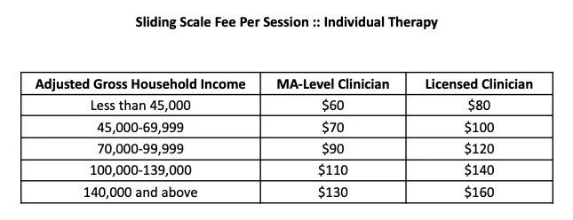 Please follow the steps listed below to submit your request for our sliding scale fee adjustment. The information provided here will allow you to determine the appropriate sliding scale tier for you based on your household AGI (adjusted gross income). This information must match the income verification documents that you have provided along with the criteria defined by the HCC sliding scale forms shared during intake.